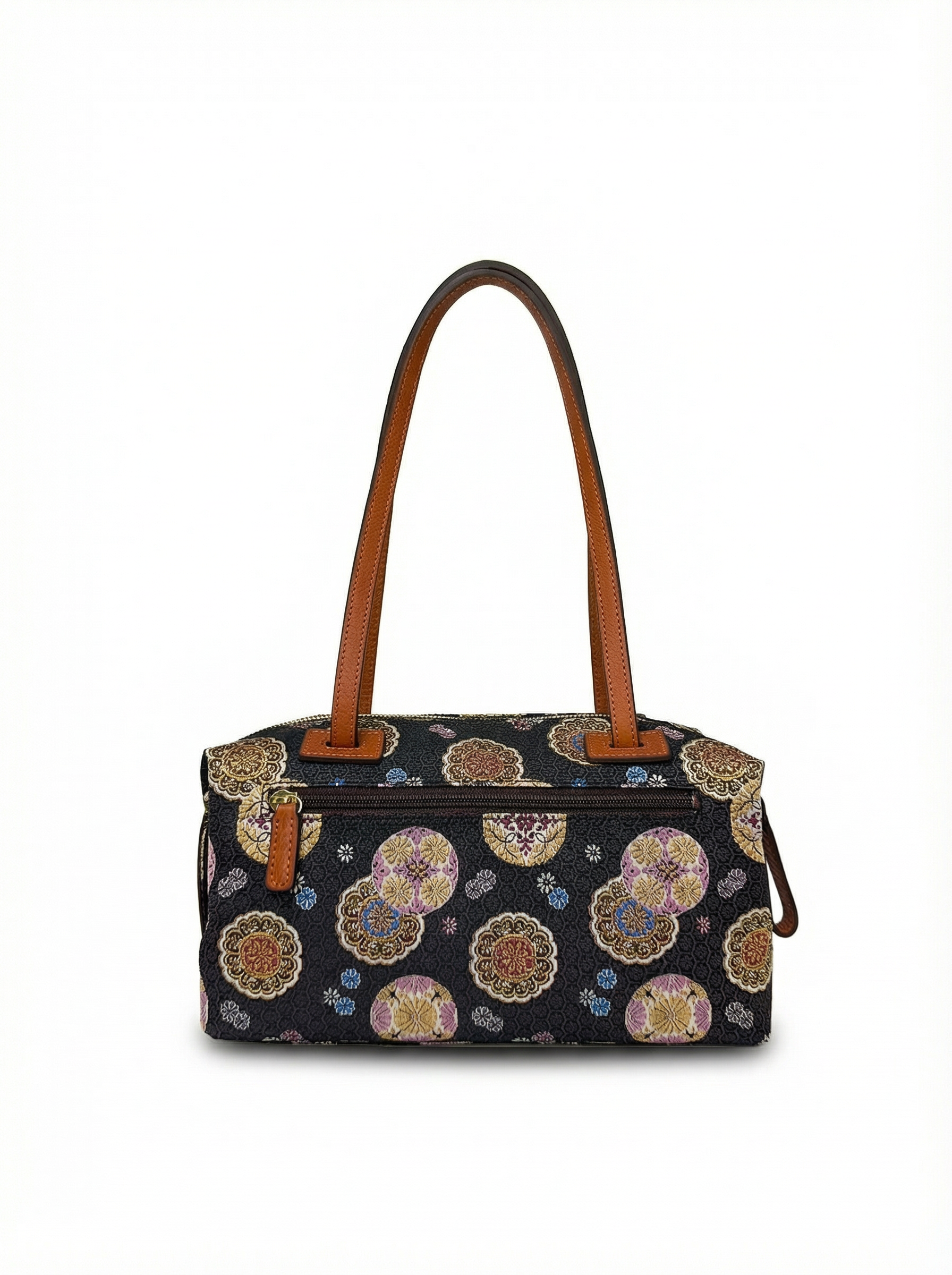 這款手提包採用傳統的西陣織工藝,搭配真牛皮,不僅外觀精美,而且非常耐用。聚酯纖維內襯具有抗菌除臭功能,提升了日常使用的實用性。