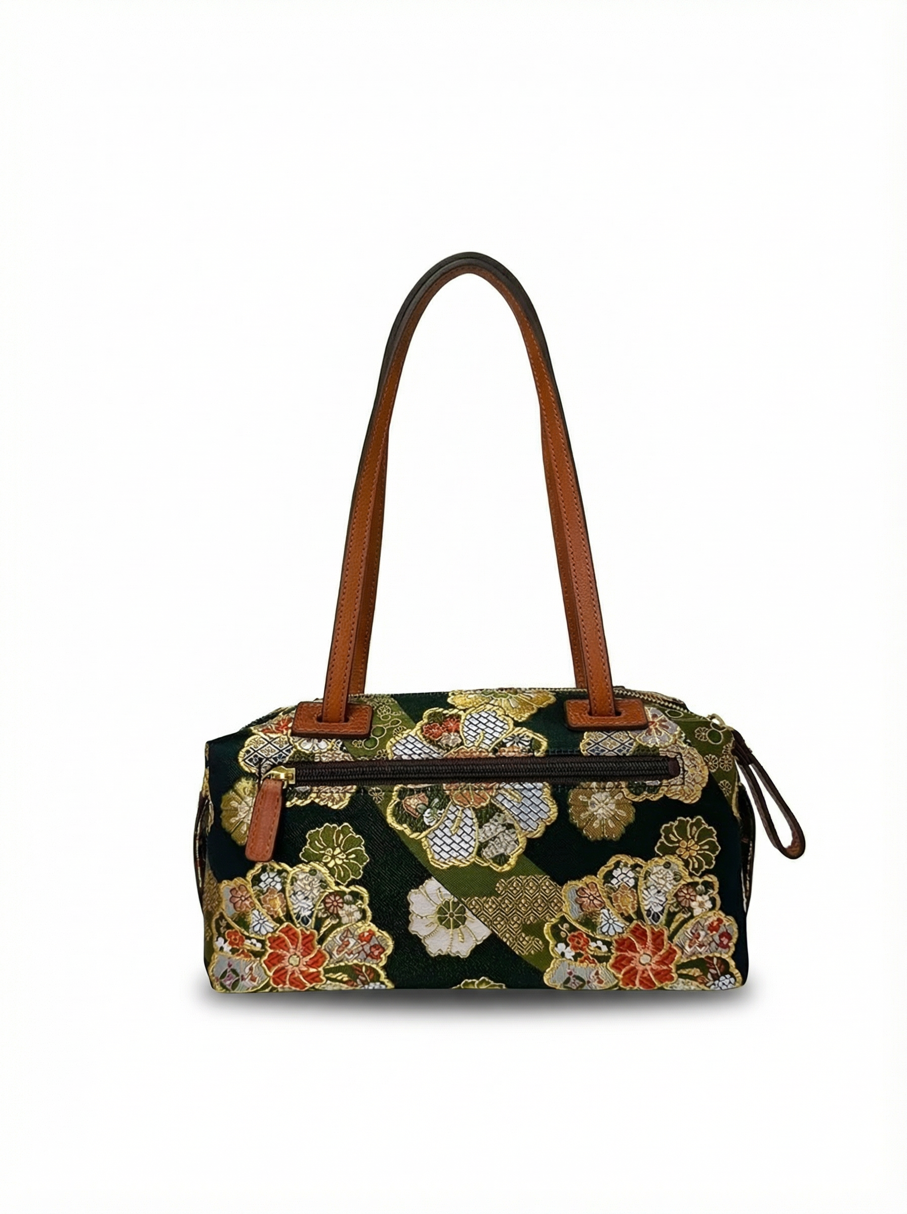 這款手提包採用京都著名的西陣織面料精心製作而成,這種面料以其鮮豔的色彩和精美的圖案而聞名。它是對日本工匠精湛技藝的致敬。每一件作品都講述著一個獨特的故事,確保每個手提包都是獨一無二的。閃耀的金色點綴更增添一份精緻優雅,讓每一針一線都成為視覺饗宴。